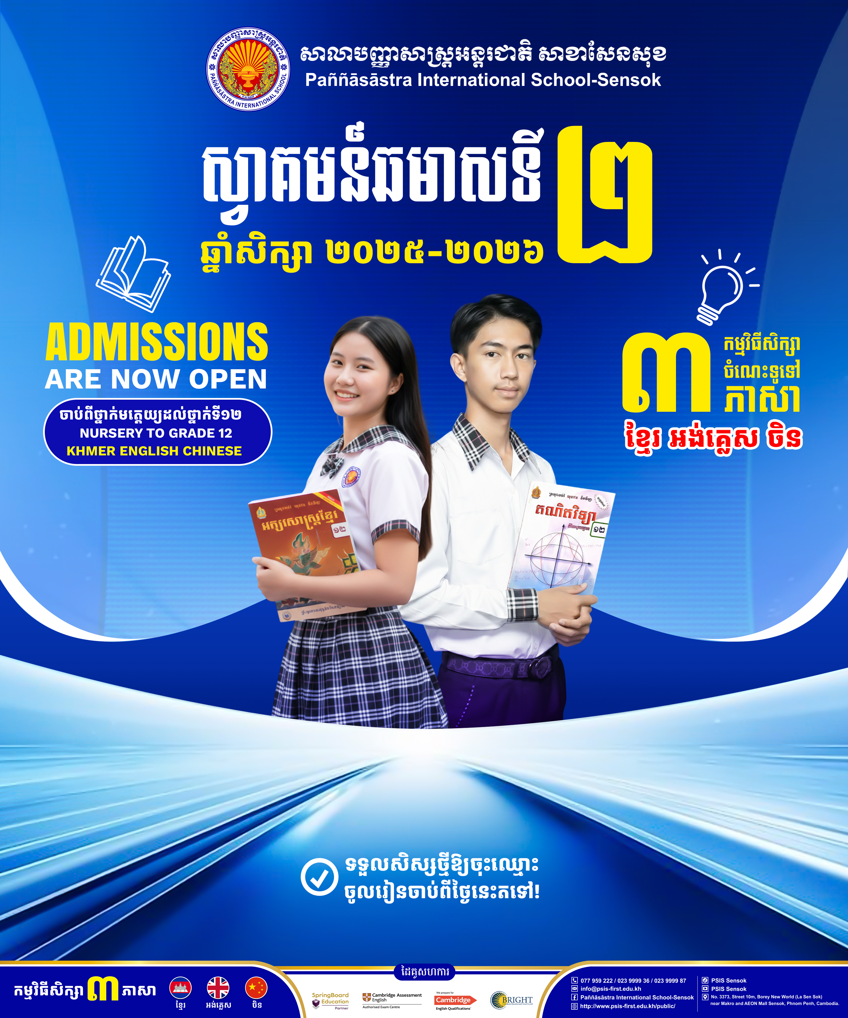 The mission of Paññāsāstra International School (PSIS)is to provide a high quality education that is distinctively English based, while pursuing academic excellence in every discipline of study. Paññāsāstra International School recognizes each student as an innocent youth full of hope and expectation in search for happiness. Each student is encouraged to reach his/her full potential through curriculum and extra-curricular programs and activities. We strongly believe that the major component to becoming a successful program is through the alliance among the school personnel, parents (home environment), the community as well as international exchange programs. Our overall mission is to prepare our future elites to be responsible, independent, life long learners, and exemplary citizen with love, compassion and kind hearts.